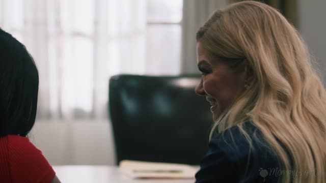 43 year old stepmom Julia North asked her 19 year old stepdaughter Mitzi X to make her come