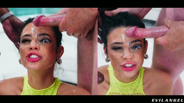Cherie DeVille takes on two cock for the first time ever! Deep throated, bound and fucked!